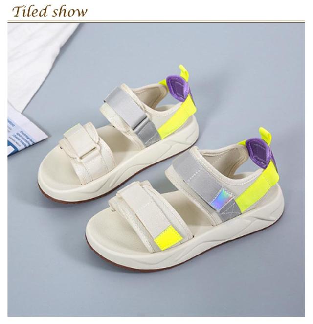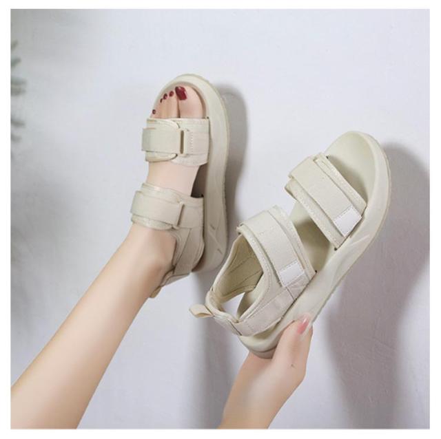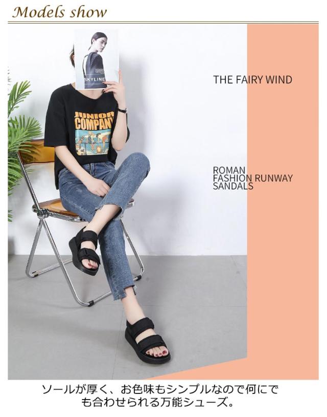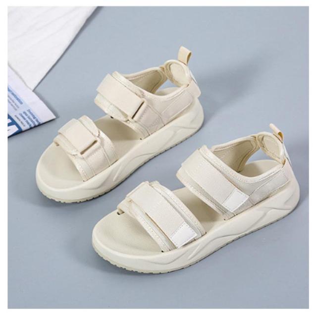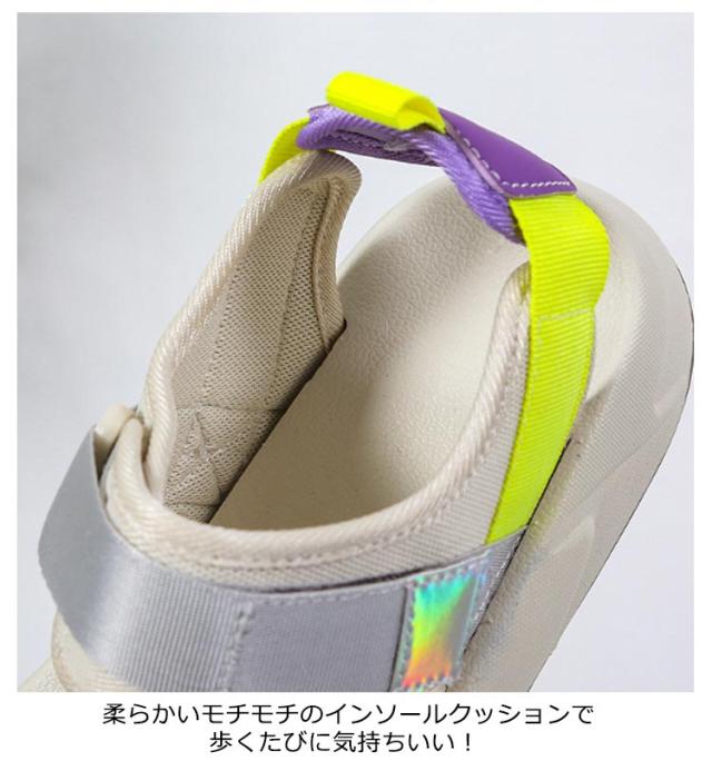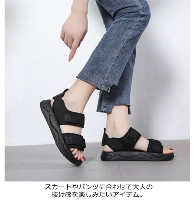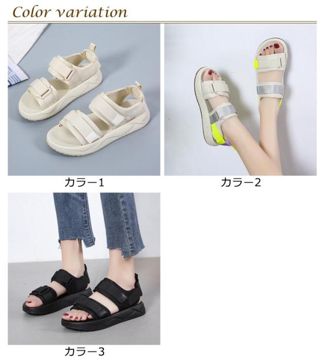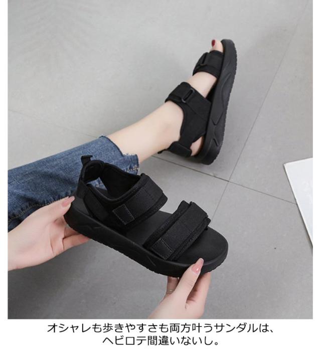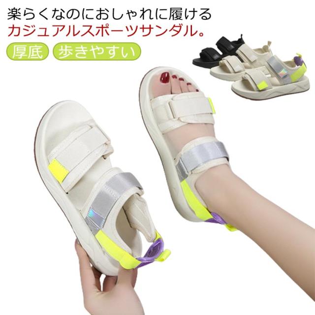 送料無料 スポーツサンダル レディース 厚底 スポサン 歩きやすい ぺたんこ サンダル 走れる クッション トレンド 痛くない 大人 シューズ スポサン ベルクロ ブラック ベージュ カジュアル アウトドア マジックテープ 軽量 おしゃれ