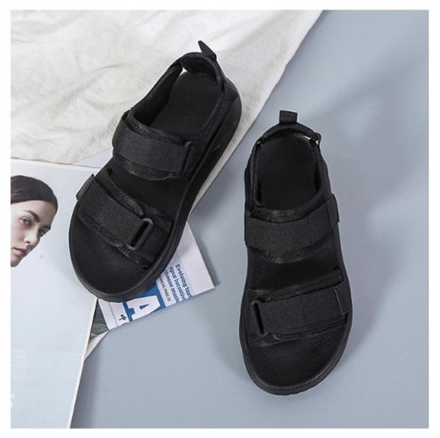 | 普段使いはもちろん、海や山、フェスなどのイベントでも活躍できるスポーツサンダル! ストラップはマジックテープ仕様で楽に着脱でき、調節できるのでストレスフリーで安心して着用できる。 3cmのソールで歩行時の圧力を吸収し、美脚を実現します。 ソフトアッパー素材クッションが入る足が擦れにくい。 本体ソール部分は足あたりの良い軽量EVAと柔軟性のあるPVCを使用しており、抜群の屈曲性で歩行をしっかりサポートしてくれます! 素足で履いて頂くのは勿論、今季はソックスと合わせるようなMIX感ある着こなしもオススメ。 | |
