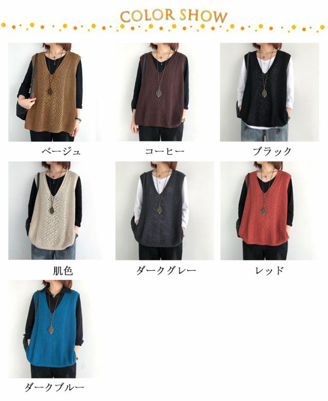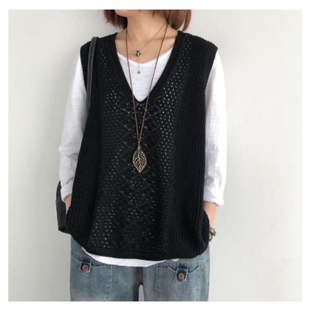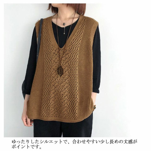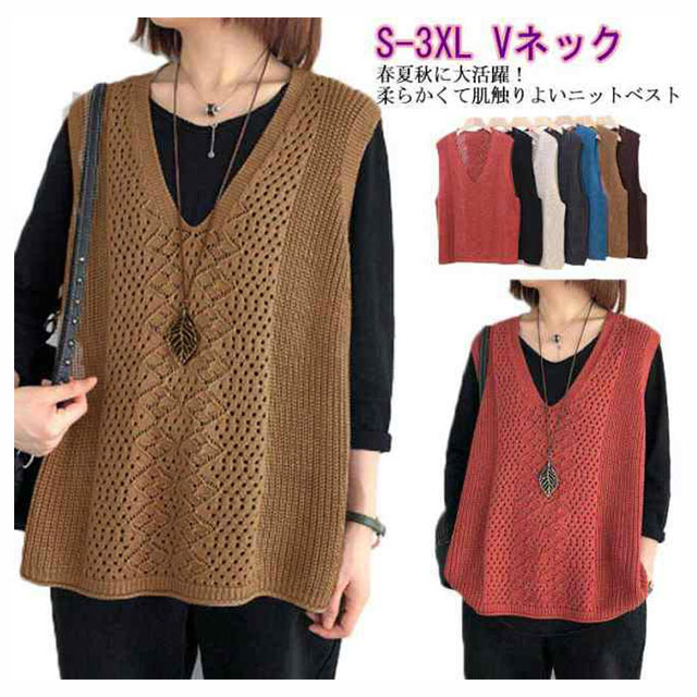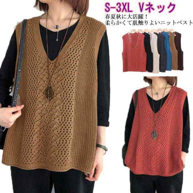 ニットベスト Vネック ノースリーブ ベスト サマーニット レディース プルオーバー ケーブル編み おしゃれ 夏 薄地 無地 ゆったり 体型カバー ミディアム丈 ストレッチ カジュアル レイヤード 重ね着 春 夏 秋 大きいサイズ 送料無料