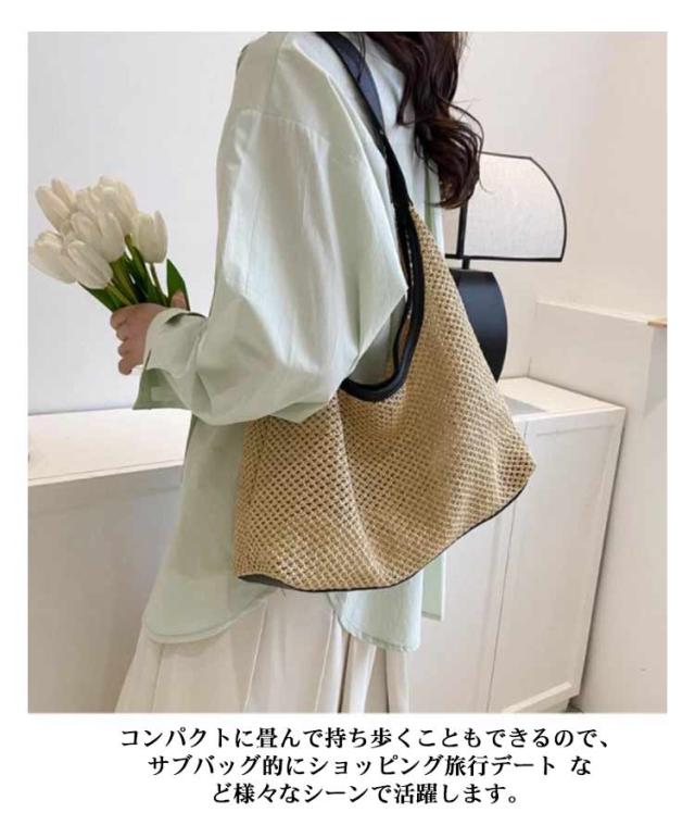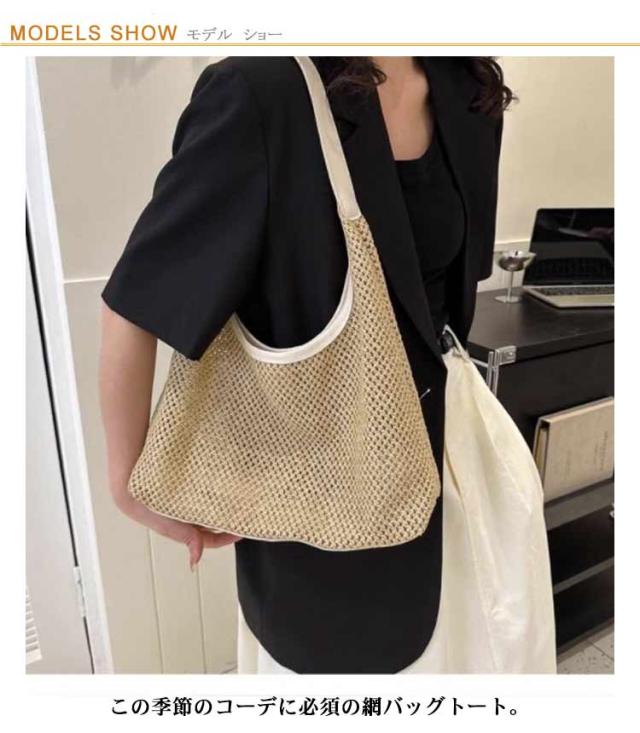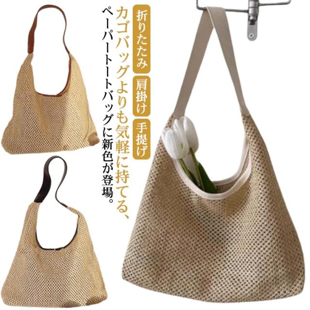 【送料無料】かごバッグ 編み メッシュ トートバッグ 編みバッグ 大容量 レディース エコバッグ トート ストローバッグ 網バッグ 折りたたみ 草編み 麦わら 軽量 バッグ 鞄 かばん カバン 肩掛け 手提げ ペーパートートバッグ 男女兼用 サブバッグ