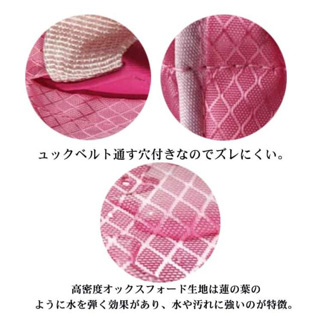 | お子様からオトナまで使える「リュックカバー」です。 XL(34*20*18cm)サイズあり!中高生が使う大きめのリュックでも大丈夫。 リュックベルト通す穴付きなのでズレにくい。 高密度オックスフォード生地は蓮の葉のように水を弾く効果があり、水や汚れに強いのが特徴。 使わないときはコンパクトになります。 | |