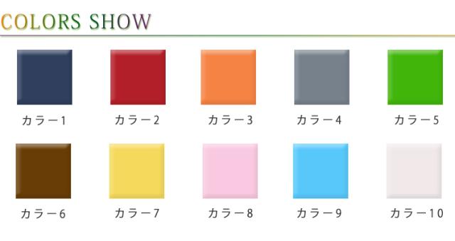 | 色 | カラー1 カラー2 カラー3 カラー4 カラー5 カラー6 カラー7 カラー8 カラー9 カラー10 |