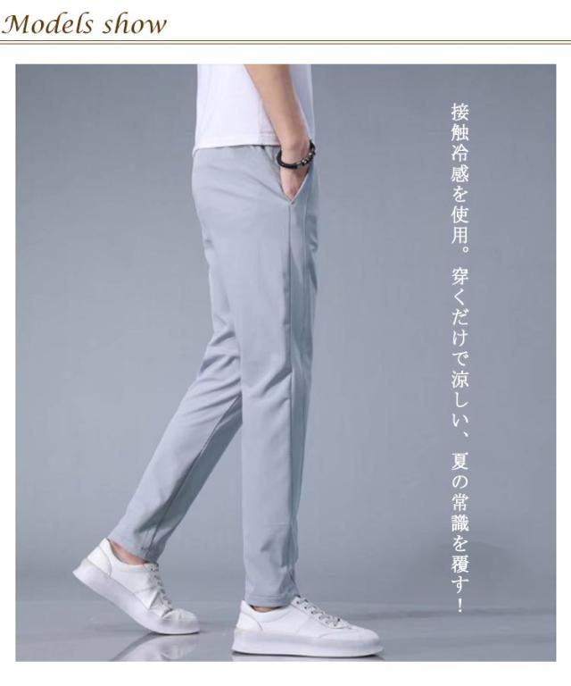 冷感パンツ?メンズ?アイスシルク?接触冷感?ひんやり?涼しい?夏?ゴルフパンツ?スキニーパンツ?チノパン?アイスシルクパンツ?9分丈?イージーパンツ?薄手?ストレッチ?伸縮?美脚?長ズボン?通気?速乾