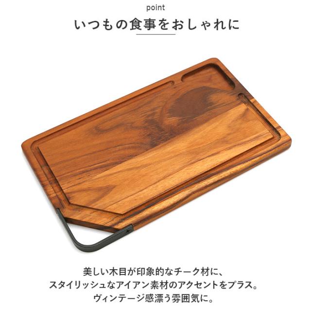 まな板 木製 通販 プレート 角 カッティングボード まないた サービングプレート おしゃれ ナチュラル アウトドア 木 チーク 取っ手 アイアン 盛り付け 四角 角皿 Plate iron handle
