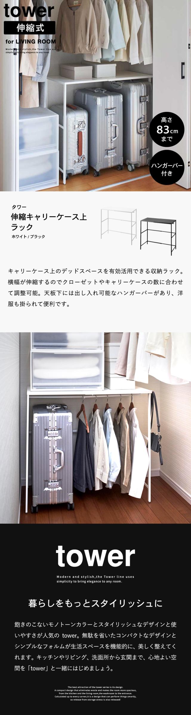 tower 山崎実業 伸縮キャリーケース上ラック タワー 幅51〜92cm ホワイト ブラック 4370 4371 送料無料 クローゼット 押入れ ウォークイン 収納 サイズ 伸縮 スーツケース キャリーケース タワーシリーズ yamazaki