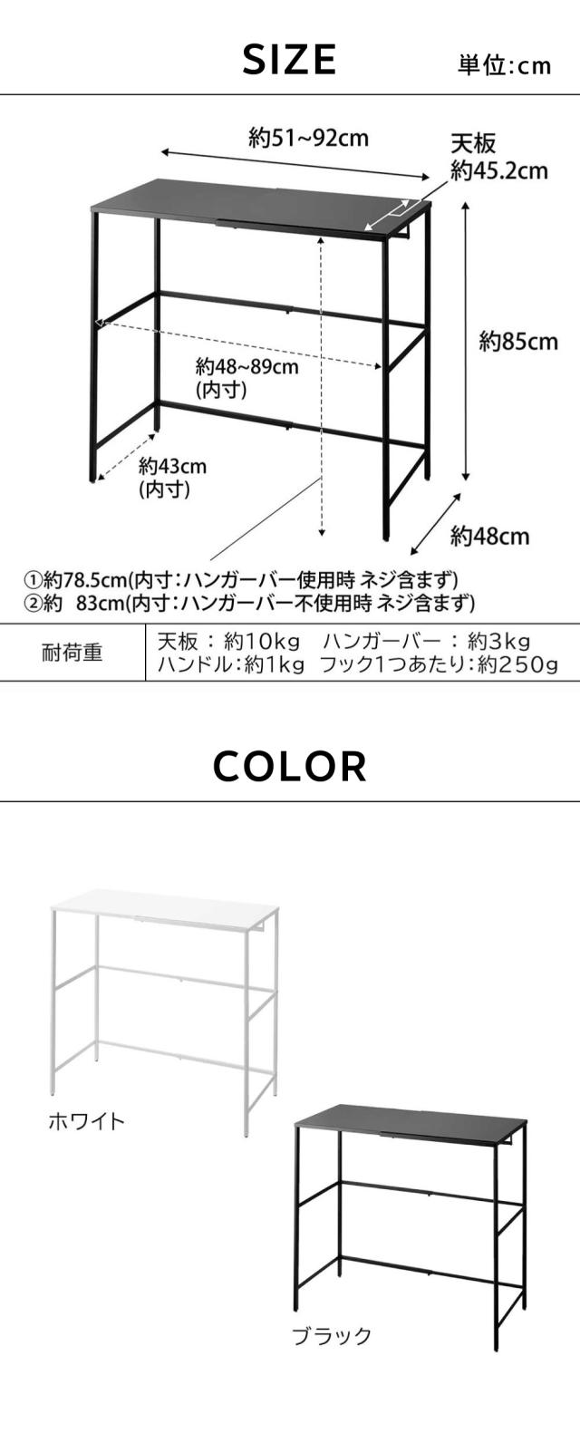 商品サイズ 約W51〜92×D48×H85cm 天板:約W51〜92×D45.2cm |