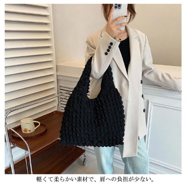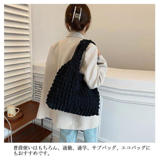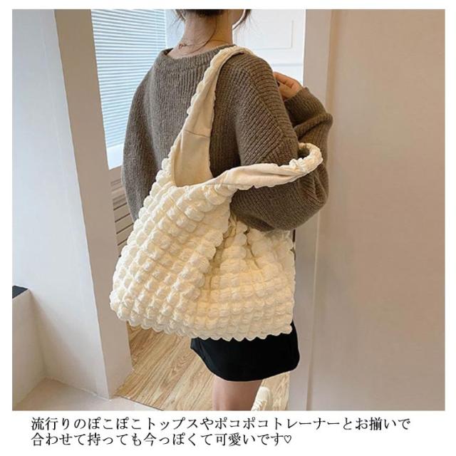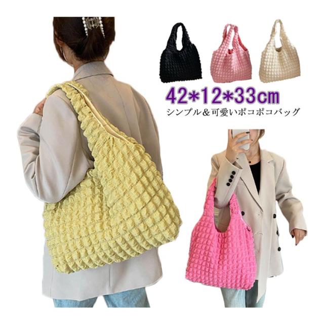 | シンプル&可愛いポコポコバッグ ぷくっと立体感のあるポップコーン生地がおしゃれ持つだけで、こなれ感のあるコーデになります。 流行りのぽこぽこトップスやポコポコトレーナーとお揃いで合わせて持っても今っぽくて可愛いです? 軽くて柔らかい素材で、肩への負担が少ない。 ポーチやスマホはもちろん?長財布やA4ファイルなど大きいものも持ち運べます。 見た目以上の大容量、荷物がしっかり収納できます。 普段使いはもちろん、通勤、通学、サブバッグ、エコバッグにもおすすめです。 | |