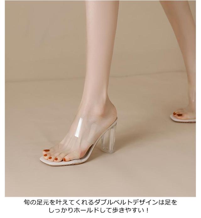 ミュール ベルト 春夏 おしゃれ サンダル 9cmヒール サンダル クリアヒール 5cmヒール 7cmヒール クリアサンダル チャンキーヒール 太ヒール 美脚サンダル 歩きやすい ハイヒール かかとなし 美脚 レジャー リゾート レディース