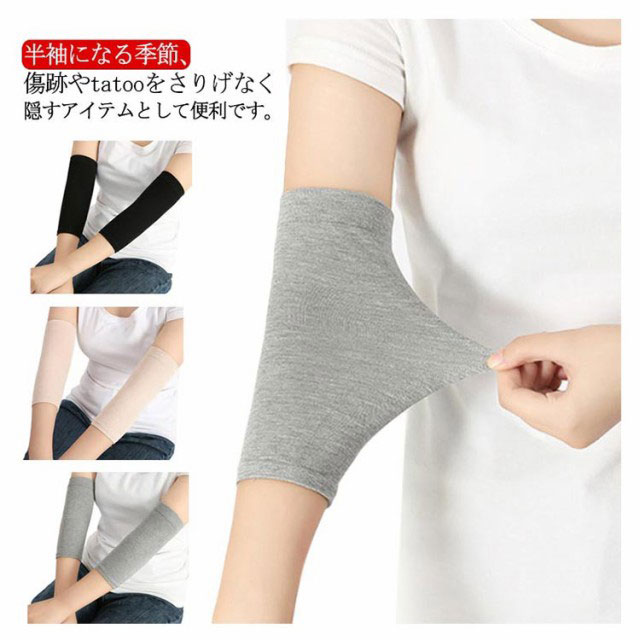 肌にやさしくぴったりフィット 隠すサポーター 肌色サポーター ブラック 引き締め 肌色 通気性 黒 二の腕サポーター 二の腕カバー 傷跡かくし tatooかくし ストレッチ