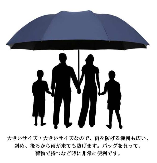 | 大きいサイズ:大きいサイズなので、雨を防げる範囲も広い、斜め、後ろから雨が来ても防げます。バッグを負って、荷物で持つなど時に非常に便利です。 超撥水性:高密度ナイロン素材を採用しており、傘の表面に撥水力が抜群なテフロン塗膜加工をしました。防水性能が優れ同時に汚れを防ぐ効果もあり、傘面に付いた雨水が染み込むことなくて、使用後に振るだけであっさりと傘表面の水滴を落ちます。傘布は皺が生じにくく、いつでもファッションな外観が保持できます。 自動開く:ワンタッチの設計により、片手で気軽く開けます。ボタンを押せば、傘が自動的に開き、荷物が多い時や片手が塞がっている時、便利に利用できます。 C型の手元:伝統的な手元と違て、C型の手元は逆さ傘の特別デザインです。C型の手元を手首にかけるといつ持たせずに両手を解放し、空いた手はスマホ操作、荷物を持ち、お子さまの抱っこなど大変便利です。 晴雨兼用傘:2重生地で、日差しを遮って傘の下に涼しいです。防水性能が優れ、雨水の侵入が防げます。晴れの日でも、雨の日でも安心に使えます。 | |