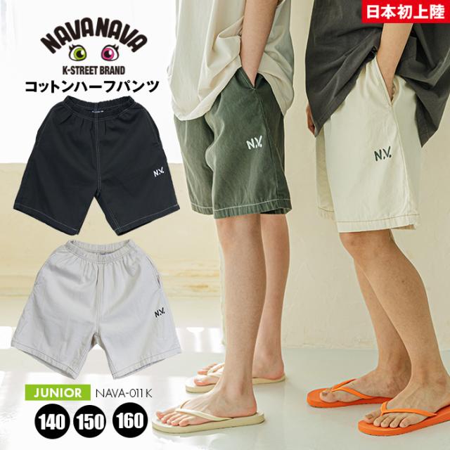 ナバナバ コットンハーフパンツ NAVANAVA 綿 子供 男子 女子 韓国 Kファッション 韓流 ストリート 男女兼用 ビックシルエット オーバーサイズ 小中学生