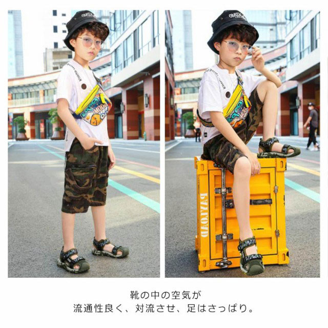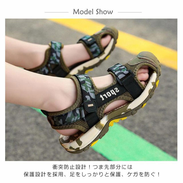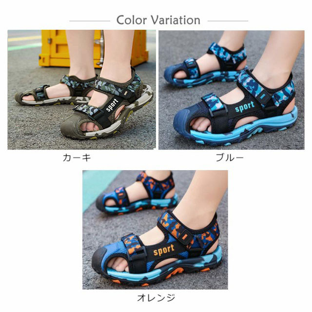 | 19cm〜25cm!通気性に優れた設計なので、夏でも涼しく快適な履き心地です。 衝突防止設計!つま先部分には保護設計を採用、足をしっかりと保護、ケガを防ぐ! 通気性、耐久性が優れている高級メッシュ素材を使用しています。 靴の中の空気が流通性良く、対流させ、足はさっぱり。 熱気をすぐサンダルの外に発散でき、蒸し暑い夏でも快適に過ごせます。 靴底は、滑り止め加工を施したゴムを使用しました、滑り止めがあります。滑りにくい加工を施した靴底で、リラックスに歩行できます。 マジックテープでのタイプを採用して、子どもでも脱ぎ履きやすい。 | |