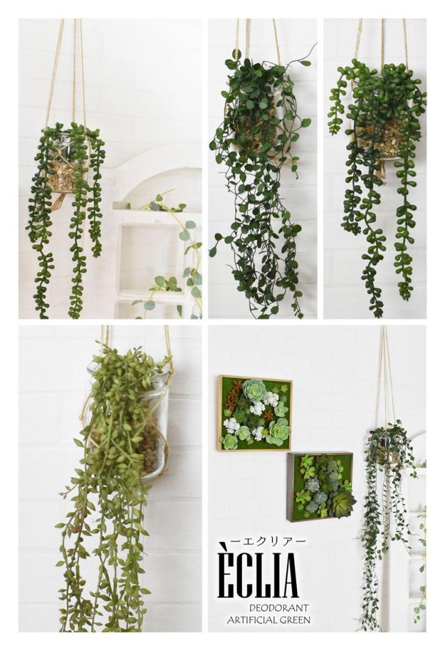 ECLIA エクリア フェイクグリーン 壁掛け 消臭アーティフィシャルグリーン おしゃれ リビング ダイニング インテリア 雑貨 玄関 キッチン トイレ ナチュラル モダン グリーン 造花 消臭 防汚 抗菌 癒し 多肉植物 CT触媒 ギフト