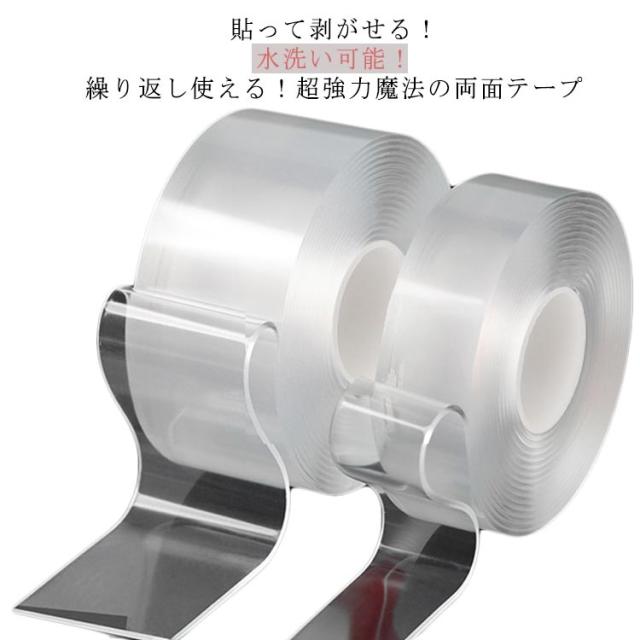 【2個セット】 両面テープ 超強力 はがせる 魔法のテープ 透明 長さ3m 幅3cm 2cm 厚さ2mm 水洗い 繰り返し使える 魔法テープ 浮かせる収納 災害対策 防災 グッズ 防災対策 防振 地震対策 洗える 伸縮性 強力 魔法の両面テープ 強力両面テープ DIY 送料無料