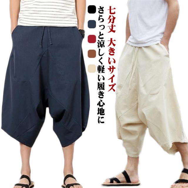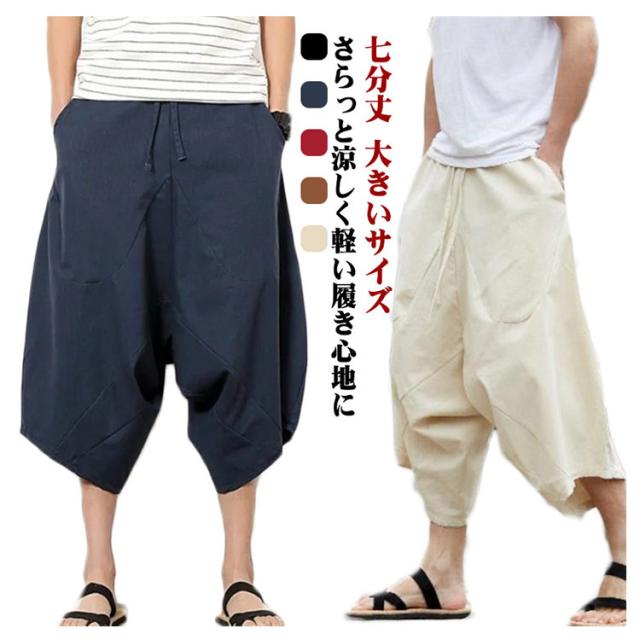 バルーンパンツ アラジンパンツ 送料無料 サルエルパンツ メンズ 七分丈 サルエル パンツ エスニック アジアン 部屋着 イージーパンツ クロップドパンツ 大きいサイズ 綿麻 春夏 夏 カジュアル 無地 ストリート系 ダンス