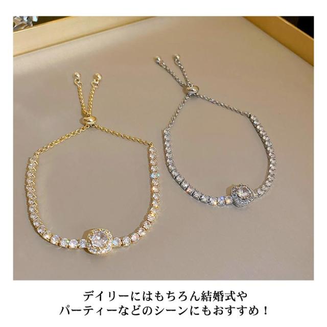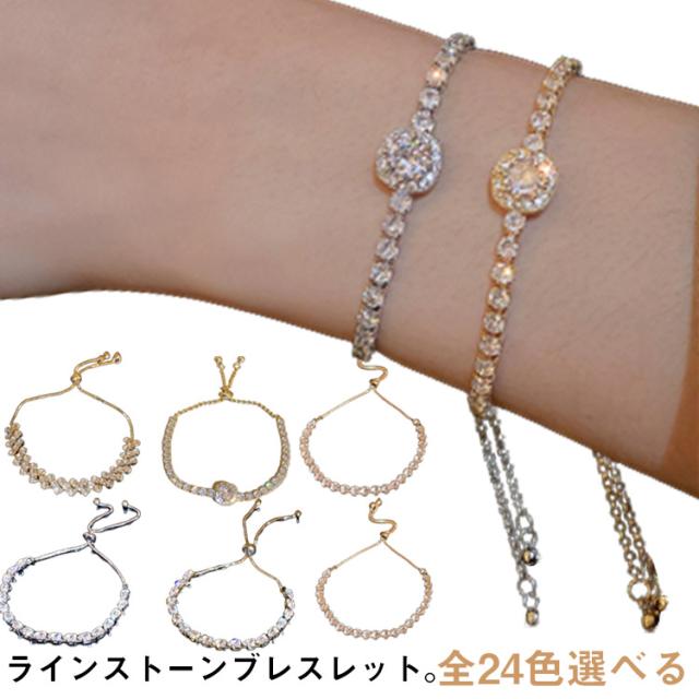 全24色選べる レディース アクセサリー ラインストーン ブレスレット ラインストーンブレスレット キラキラ 一粒 オシャレ ゴールド ラウンド ピンクゴールド ブレスレット レディース ファッション小物 韓国ファッション 送料無料