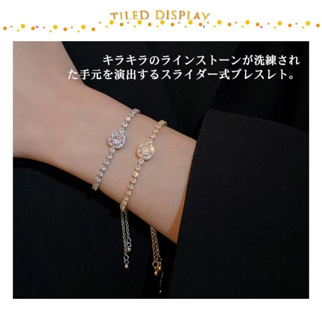 | 【 全24色選べる 】 ラインストーンブレスレット。 キラキラのラインストーンが洗練された手元を演出するスライダー式ブレスレト。 デイリーにはもちろん結婚式やパーティーなどのシーンにもおすすめ! | |