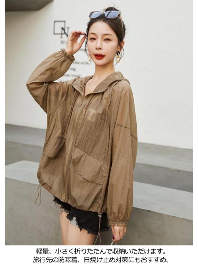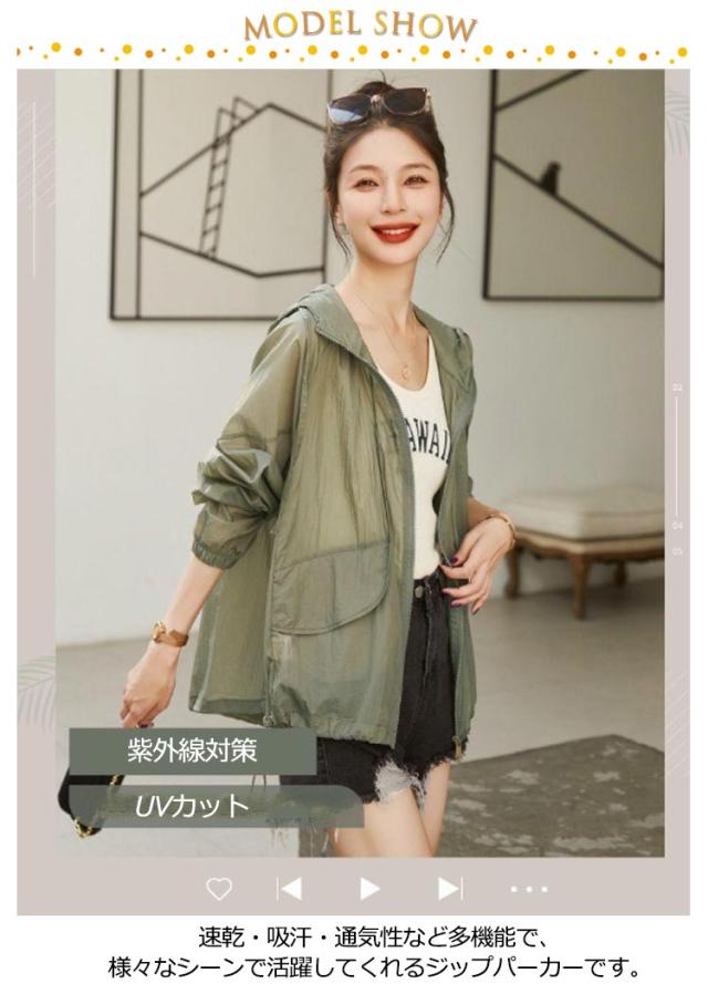 送料無料 ブルゾン レディース シアーブルゾン シアーパーカー UVカット 透け感 アウター ジャケット トップス 長袖 フード付き シースルー 透け ジップパーカー ライトアウター 大きいサイズ ゆったり 紫外線対策 冷房対策 羽織り 薄手 軽い きれいめ 通勤 通学 春 夏