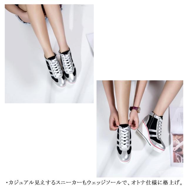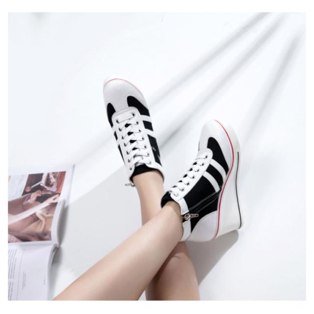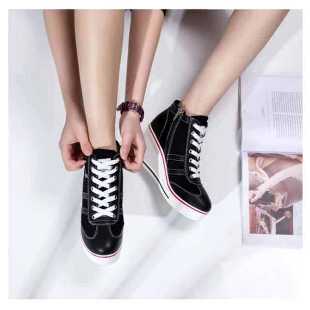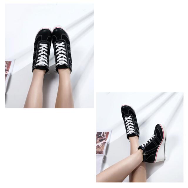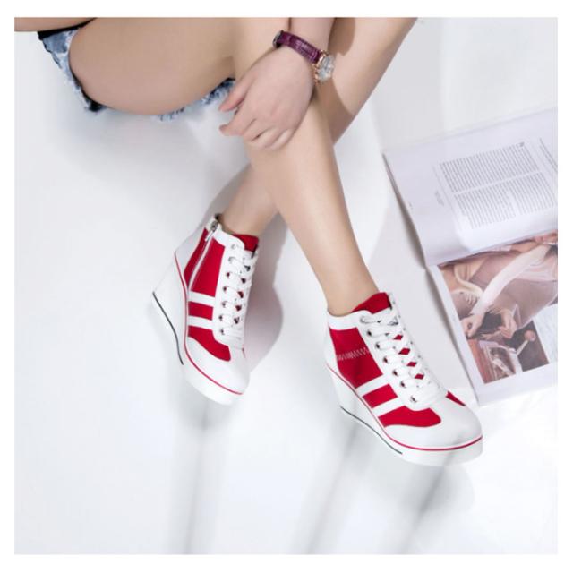 ウェッジヒールスニーカー レディース 厚底 隠しヒール スニーカー レースアップ 8cmヒール ハイカット サイドジッパー 背伸び シューズ 配色 バイカラー キャンバス 靴 サイドジップ 女性用 オシャレ かわいい ファッション バレンタイン 母の日 プレゼント 全6色