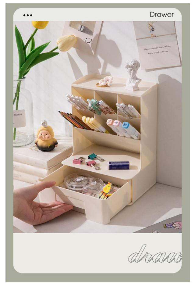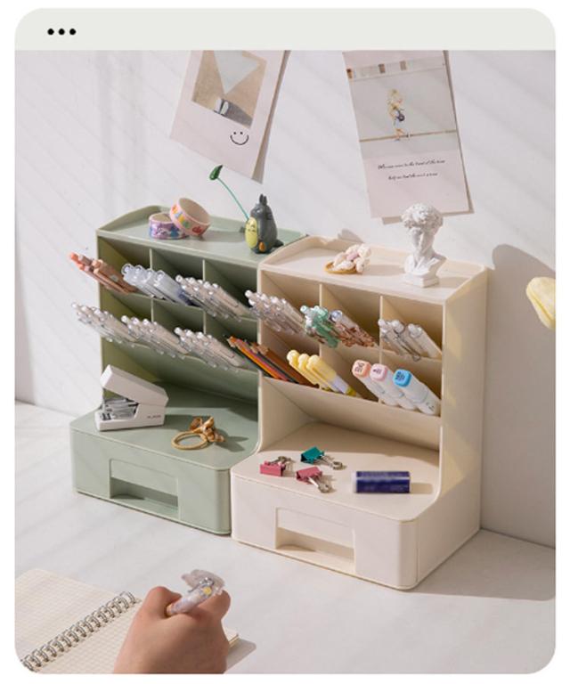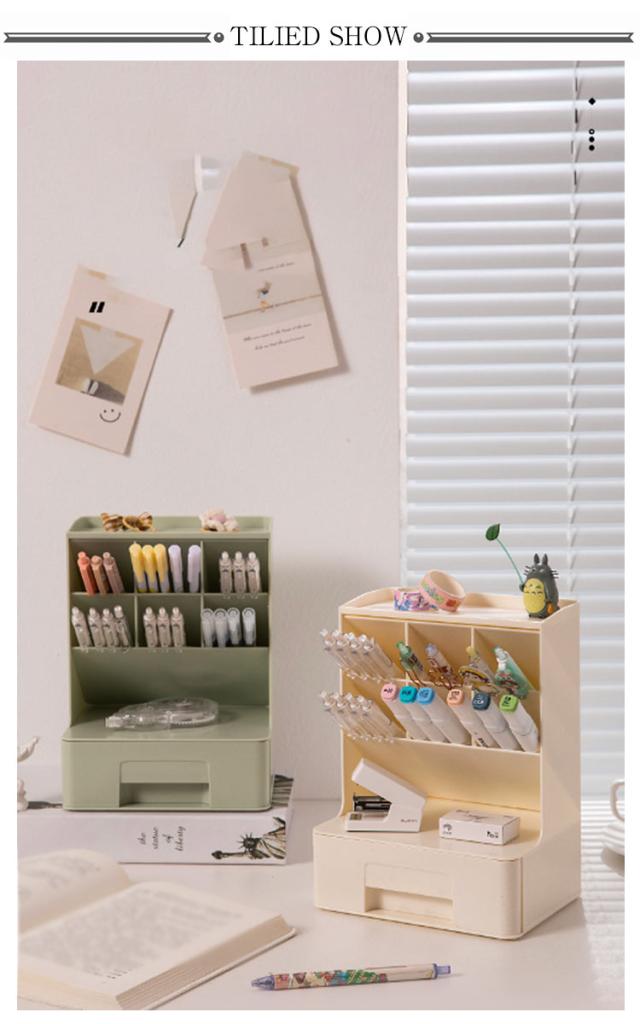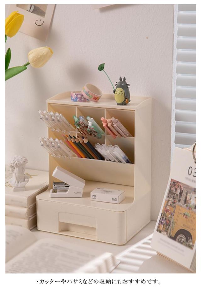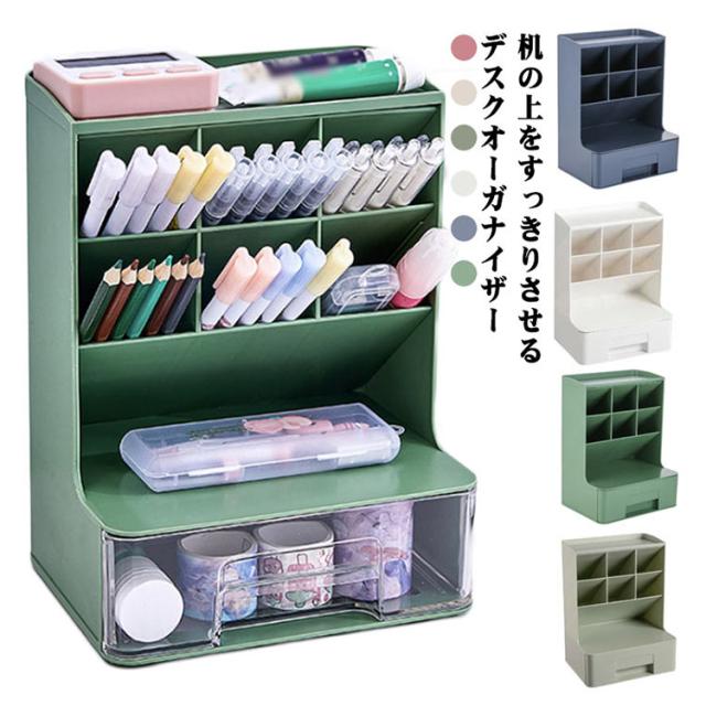 デスクオーガナイザー ペン立て 小物入れ 卓上収納 ペンホルダー 斜め ペン収納 引き出し 小物ケース オフィス収納 デスク 文房具 コスメ 多機能 収納ボックス 事務用品 机上整理 仕事 学校 子供 小学生 中学生 高校生 大学生 大人 便利グッズ 選べる2タイプ 無地 全6色