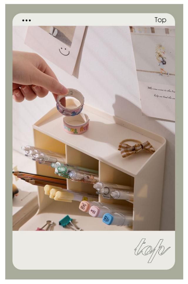 | ・机の上をすっきりさせるデスクオーガナイザー ・斜めに差し込むので、仕舞いやすく、取り出しやすい設計になっています。 ・カッターやハサミなどの収納にもおすすめです。 ・文房具だけでなくメイク道具の収納にもご利用いただけます。 | |