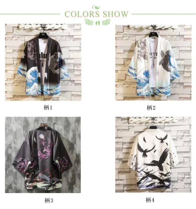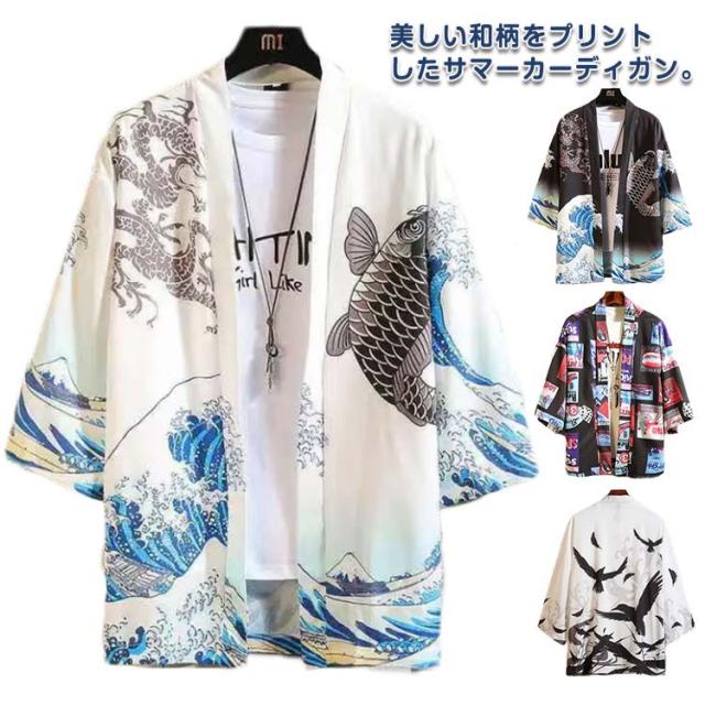 【送料無料】羽織 レディース メンズ カーディガン UVカット 七分袖 ゆったり 鶴柄 トップス アウター 夏 着物 浴衣 和風 羽織 法被 甚平 ダンス衣装 コスプレ 花火大会 男女兼用 薄手 春夏秋 きれいめ おしゃれ トップス 原宿系