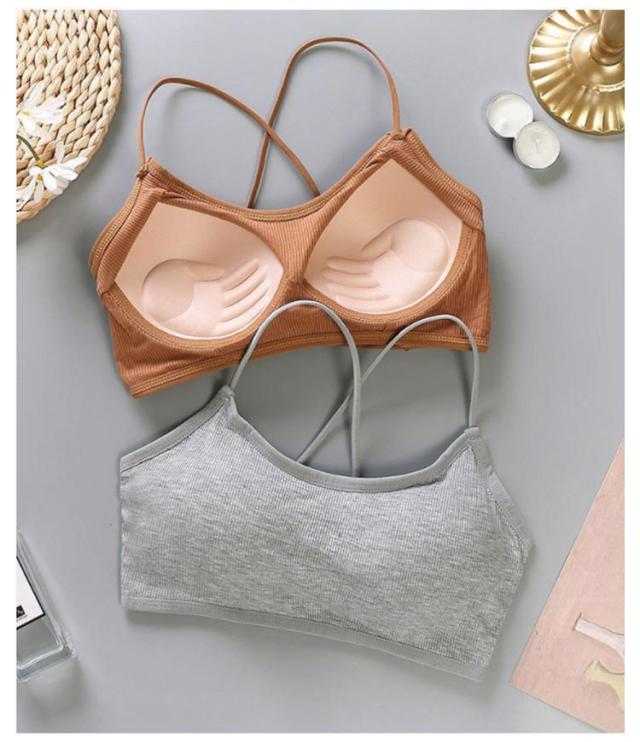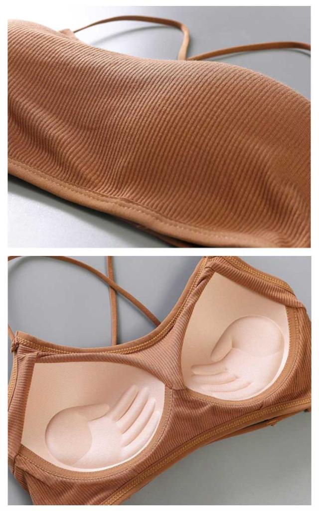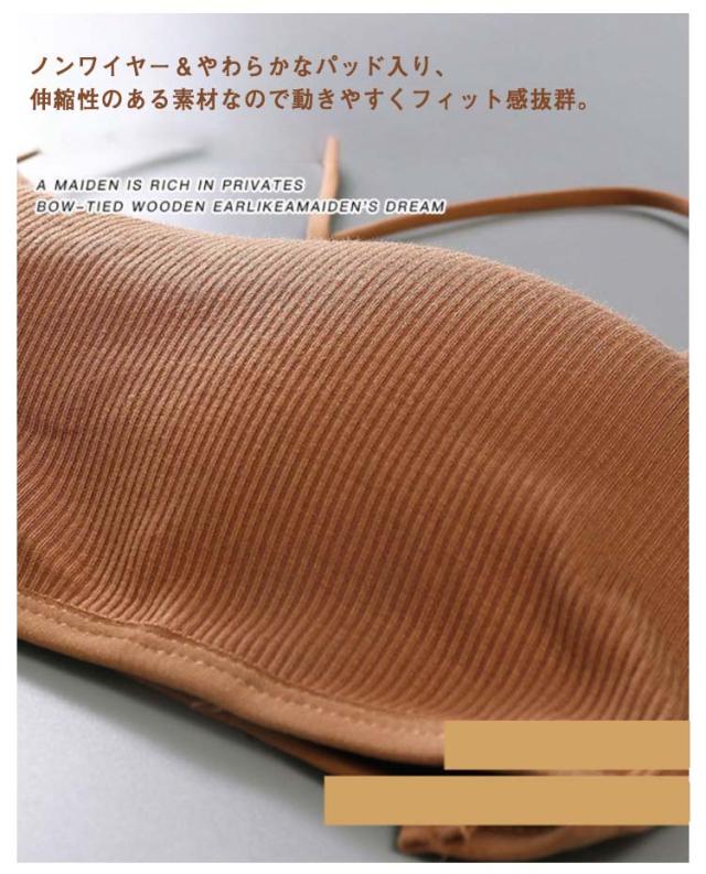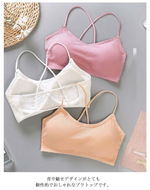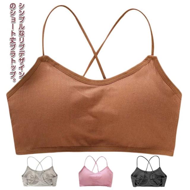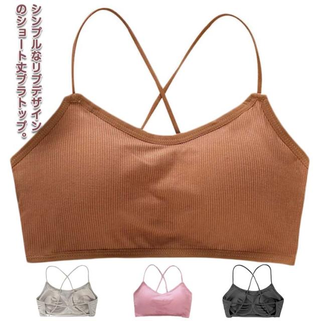 | シンプルなリブデザインのショート丈ブラトップ。 ノンワイヤー&やわらかなパッド入り、伸縮性のある素材なので動きやすくフィット感抜群。 カップ付きなので下着代わりに着れて、透け感のあるトップスや短めのトップスを着用時にお使いいただけます。 背中の大きく開いたドレスやワンピースと合わせてセクシーに、そのままショーパンと合わせてスポーティーに、幅広いコーディネートが楽しめます。 背中魅せデザインがとても個性的でおしゃれなブラトップです。 | |