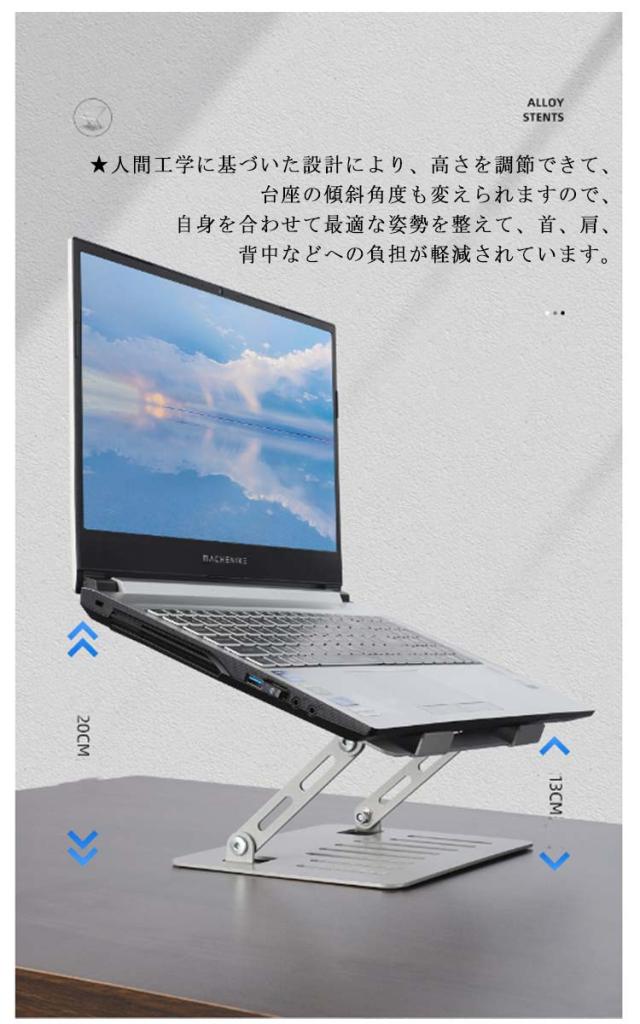 ノートパソコン?スタンド?ノートパソコンスタンド?パソコンスタンド?折りたたみ式?ノート?PCスタンド?アルミ合金製?ホルダー?パソコン台?高さ?角度調整可能?姿勢改善?軽量?滑り止め?Macbook/Macbook?Air?11〜17インチまでに対応?おしゃれ?在宅?猫背解消