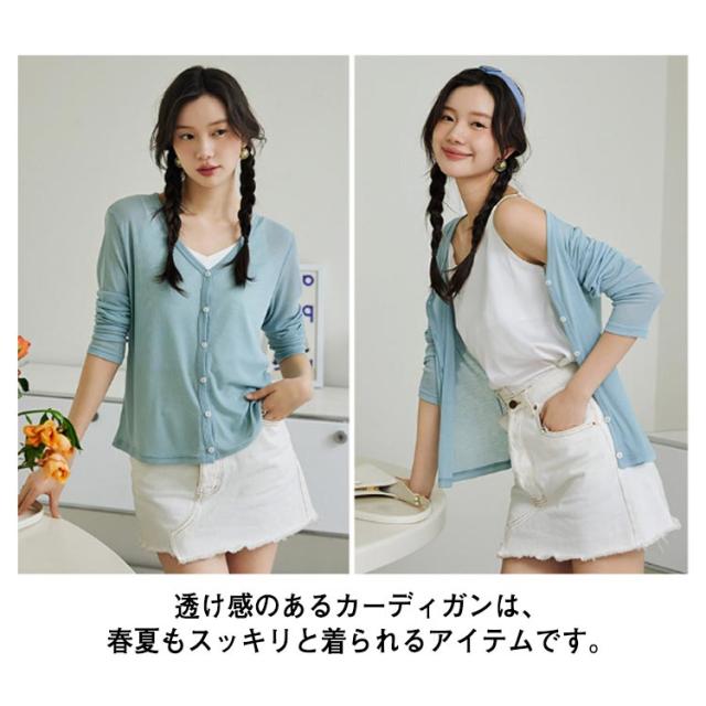 カーディガン レディース 春夏 サマーカーディガン 送料無料 薄手 uvカット 接触冷感 テンセル シルクタッチ トップス きれいめ カジュアル オフィス ニットカーディガン シアーニット Vネック サマー 長袖 羽織り 春物 夏物 細見え 無地