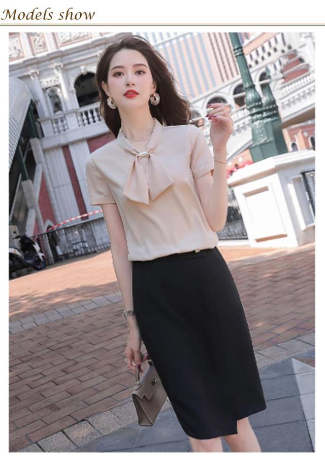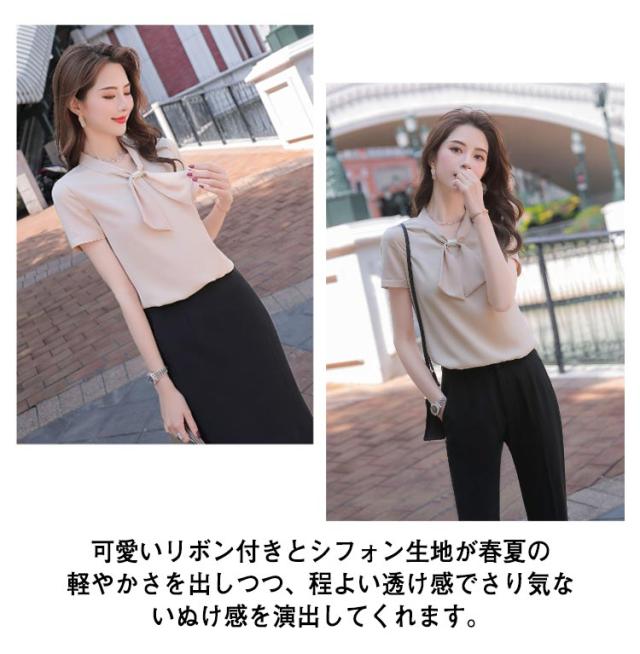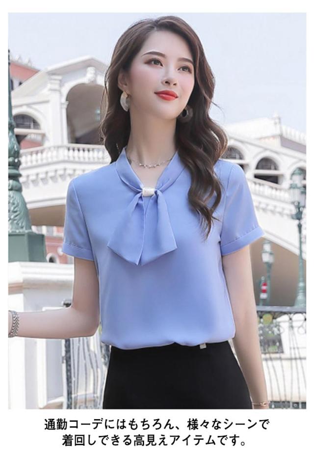 ブラウス シフォントップス レディース 半袖シャツ 送料無料 ボウタイシャツ リボン シャツ とろみシャツ トップス 半袖 通勤 エレガント 夏服 オフィス 30代 40代 大きサイズ おしゃれ 可愛い