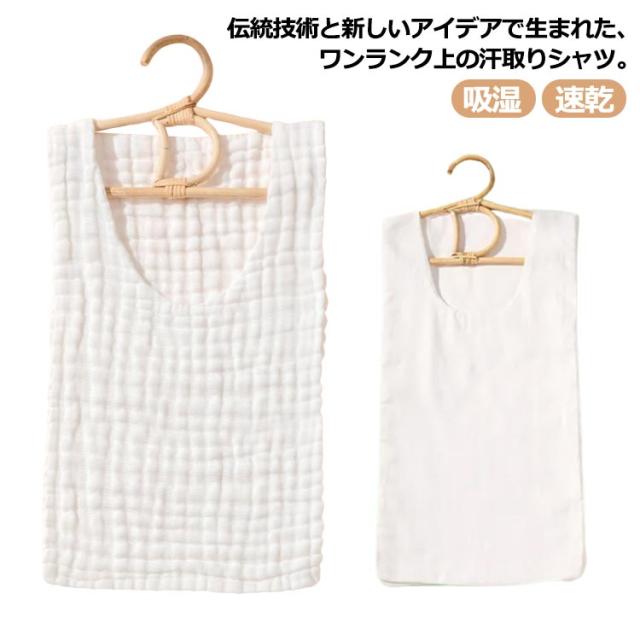 | 伝統技術と新しいアイデアで生まれた、ワンランク上の汗取りシャツ。 汗びっしょりの放置は臭いも気になるし不快ですよね… スルッとカンタン引っ張って脱げる 汗をよく吸い、脱ぐときはひっぱるだけ! 服を着たままスルッと脱げる、気になる汗ジミも脱ぐだけでサラッ! | |