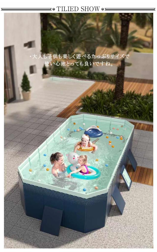 | ・折りたたみ式で簡単設置がうれしい!家族で遊べるプール ・広げるだけですぐにプールに入れます! ・大人も子供も楽しく遊べるたっぷりサイズで使い心地とっても良いですね。 ・サイズは、286(幅)×50(高さ)×167(奥行)cmと、大人も足を伸ばせる大きさが特徴です。 ・複合強化ボードが内蔵されているので、耐久性が高く安定しています。 ・排水栓も側面と下のほう、2か所に付いていますので簡単に抜くことができ、短時間で排水可能です。 ・また、折りたたみが簡単でコンパクトサイズにして収納できるのがうれしいポイントです。 | |