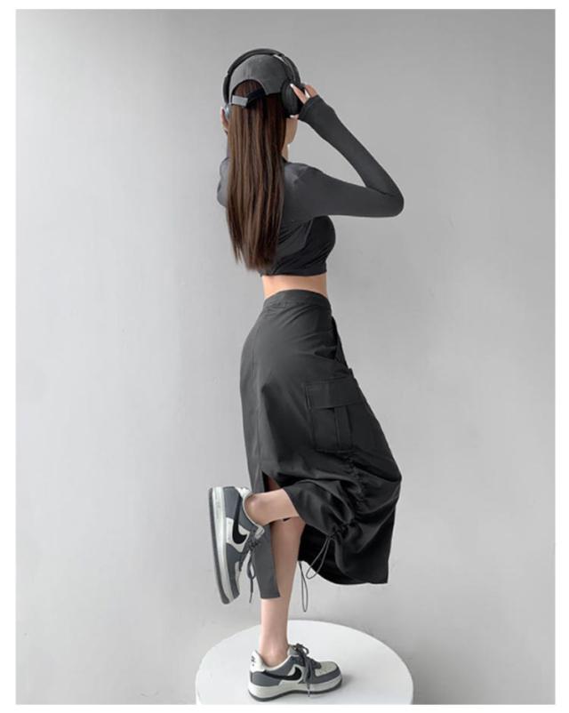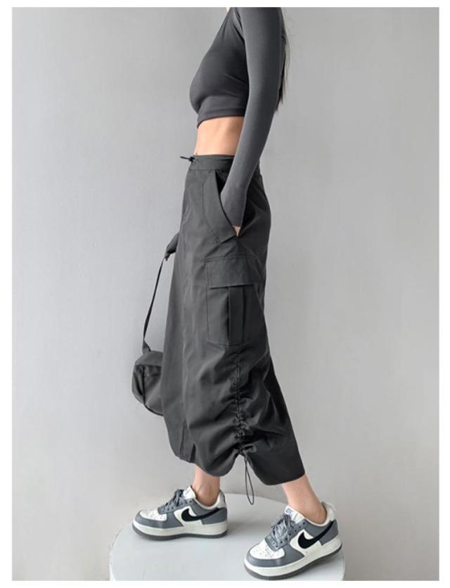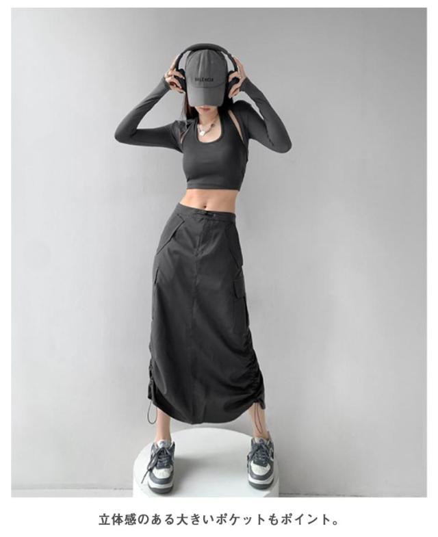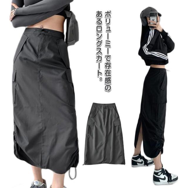 スカート ロングスカート レディース マキシスカート ワークスカート ミリタリー カーゴ Aラインスカート 大きいサイズ 体型カバー ロング マキシ Aライン ウエストゴム ゴム シフォン 無地 春 夏 ダンス 発表会 キレイめ カジュアル 大人 美シルエット 送料無料