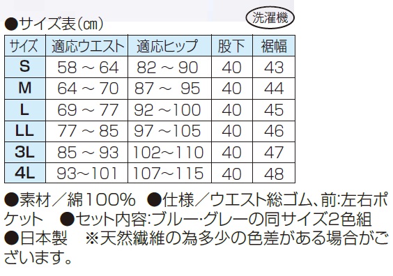 ●仕様/ウエスト総ゴム、前:左右ポケット