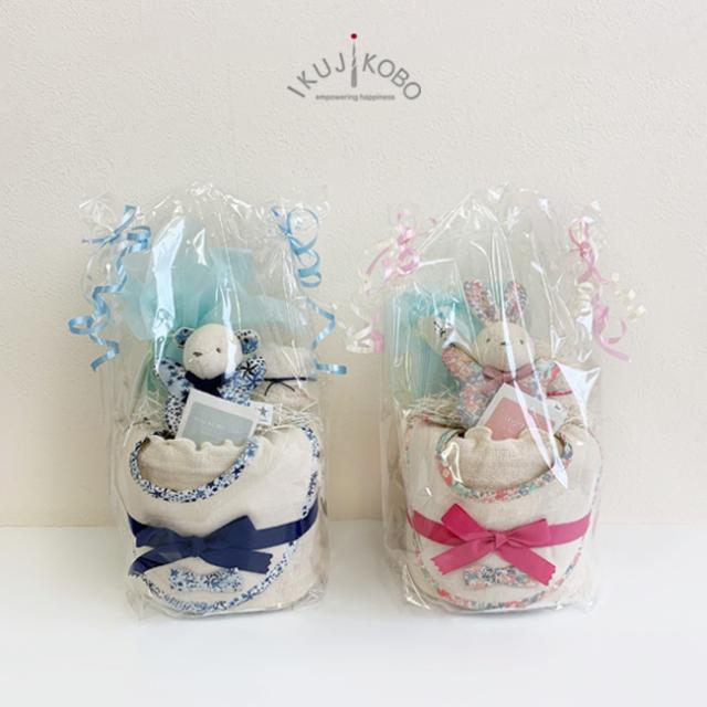 ナチュラルで優しい肌触りのオーガニックコットンパイルなどを使用しリバティ柄の生地で可愛く仕上げた貰って嬉しいギフトセットです。