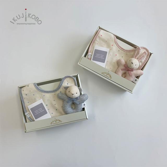 IKUJIKOBO 育児工房 スタイ・ラトル・ソックスギフトセット No.383409(出産祝い 女の子 スタイ セット おしゃれ 男の子 姉弟 双子 お揃い オーガニック コットン ベビーギフト 二人目 赤ちゃん 握る おもちゃ 出産 お祝い プレゼント) 即納