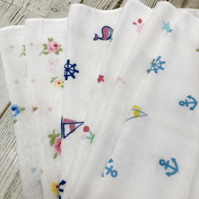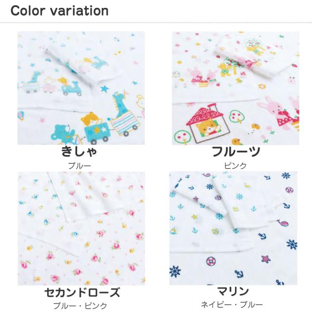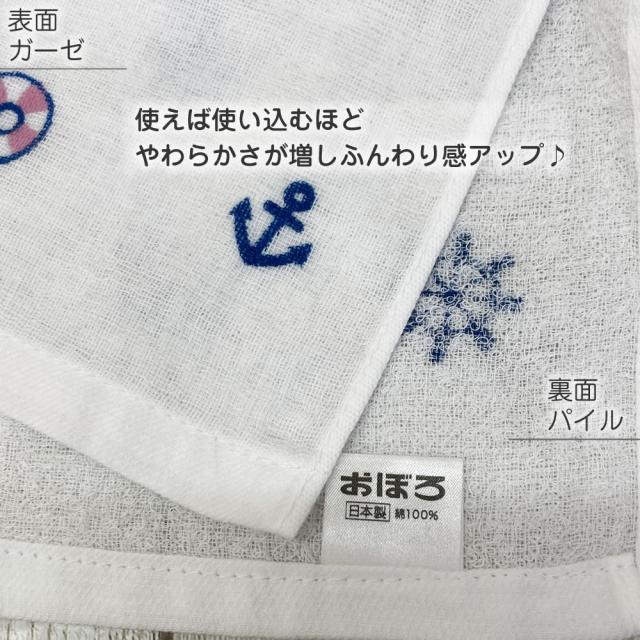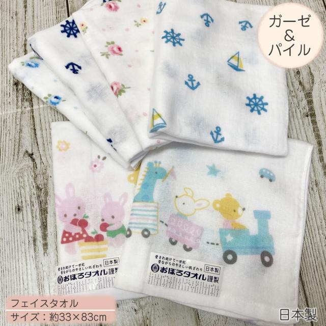 おぼろ フェイスタオル【約33×83cm】ガーゼ パイル きしゃ フルーツ マリン セカンドローズ 赤ちゃんタオル ベビー ガーゼ 片面ガーゼ さらっと ふんわり やわらかい 薄手 吸水 コンパクト 汗ふき