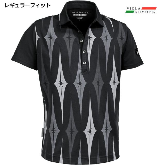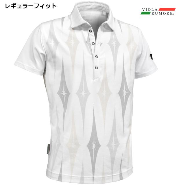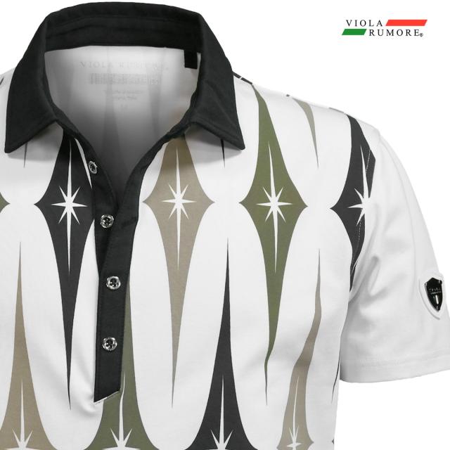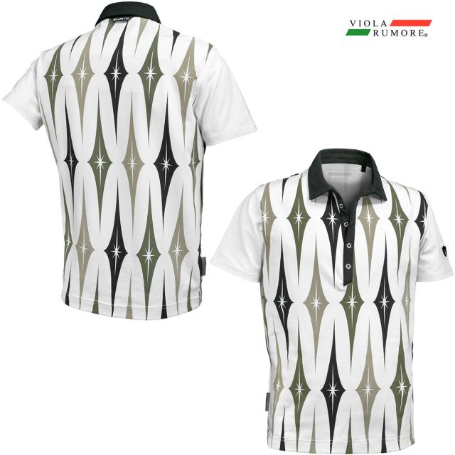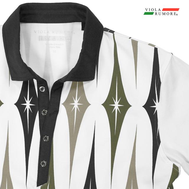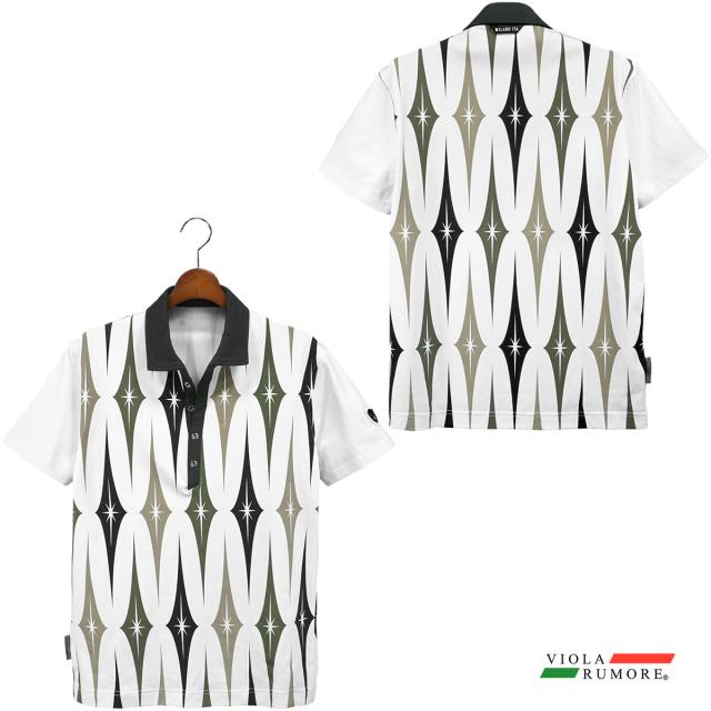VIOLA rumore ヴィオラ ビオラ ポロシャツ 半袖 ダイヤ柄 総柄 メンズ ストレッチ スリム mens(ホワイト白ブラック黒) 31311