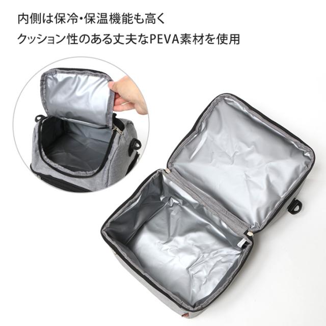 保冷・保温効果が高く、クッション性のある丈夫なPEVA素材を内側に使用。