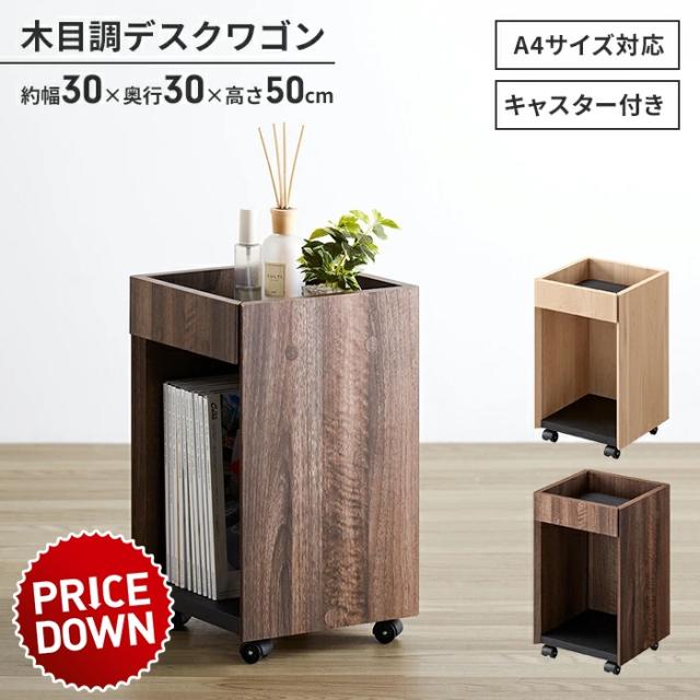 【値下げ】デスク下収納 キャスター付き 幅30 木目調 デスクワゴン スリム サイドワゴン 収納ラック A4サイズ 収納棚 おしゃれ ラック