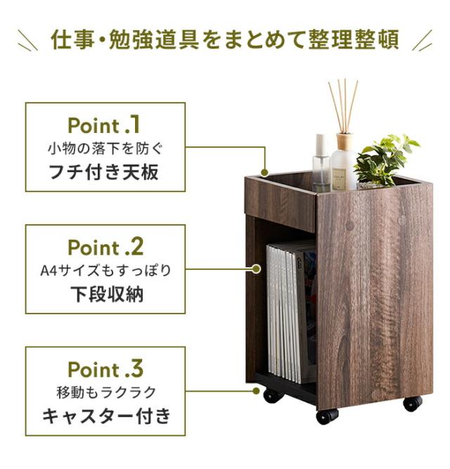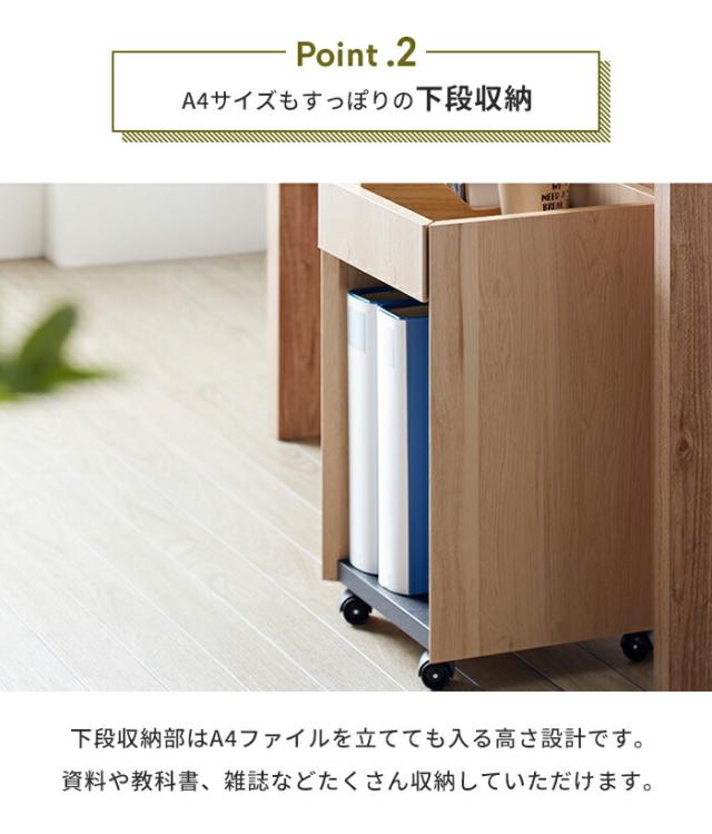 キーワード: デスクワゴン デスク下収納 キャスター付き 幅30 木目調 スリム サイドワゴン 収納ラック A4サイズ 収納棚 おしゃれ ラック 木製 サイドチェスト 収納チェスト デスク ナチュラル ブラウン コンパクト オープン