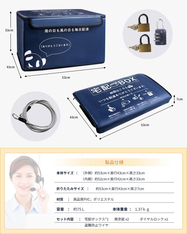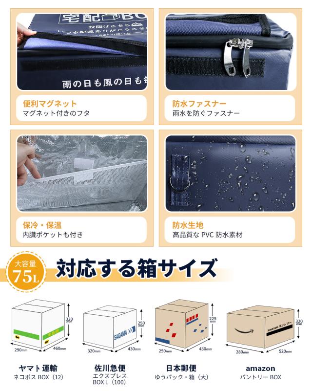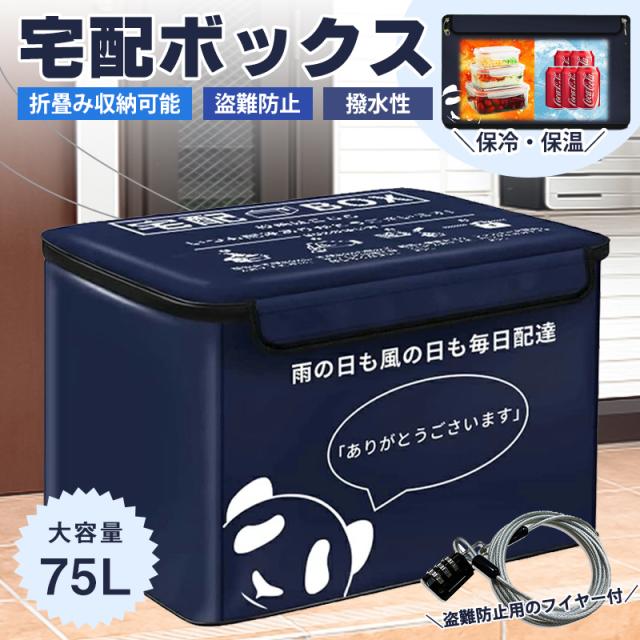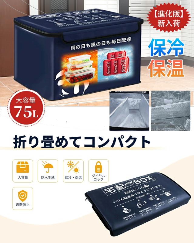 宅配ボックス 保温 保冷 防水 屋外 75L 大容量 置き配ボックス 折りたたみ 不在受取 ア パート マンション 戸建て用 個人宅 南京錠 x2 ダイヤルロック x1 マグネット 盗難防止ワ イヤー付き コンパクト 防水 おしゃれ 日本語取扱説明書付き