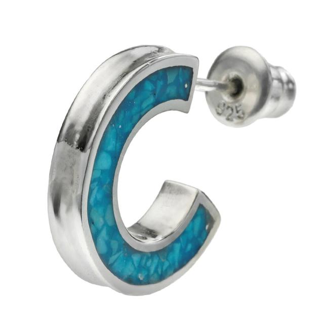 クラッシュ ターコイズ フープ スタッド ピアス メンズ シルバー925 アクセサリー シルバーピアス 片耳用 (1個売り)
