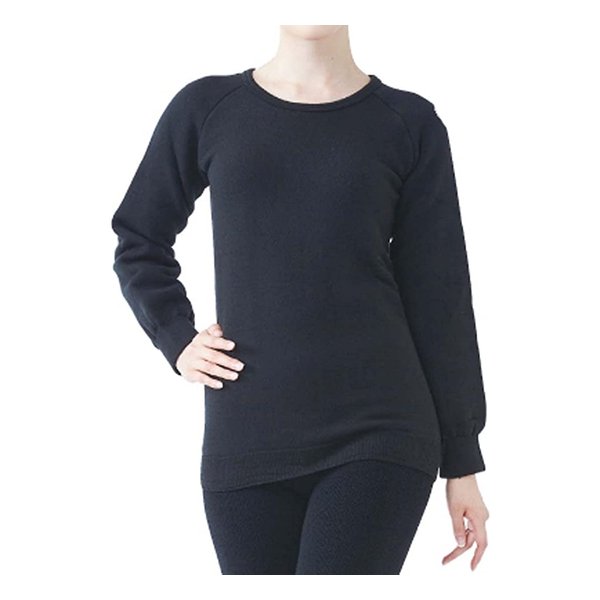 ROUGH&ROAD (ラフアンドロード) ラフアンドロード 超極厚あったか丸首長袖インナー レディース Lサイズ ブラック MJM-015BKWL
