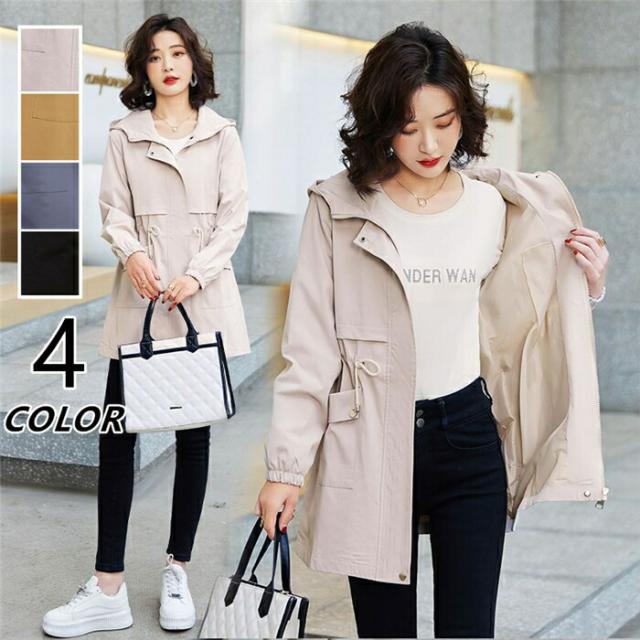 ブルゾン レデイース スプリングコート フード付き トレンチコート ミディアム丈 春アウター 薄手 春秋 カジュアル 通勤