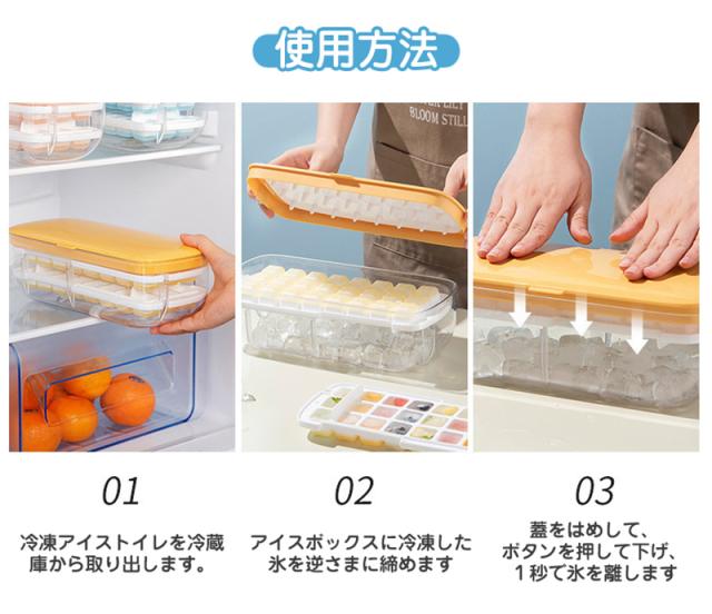 2023新型 製氷皿 製氷器 シリコン 大容量 32/64個取り アイストレー 製氷機 収納ボックス おしゃれ 蓋付き 取り出し簡