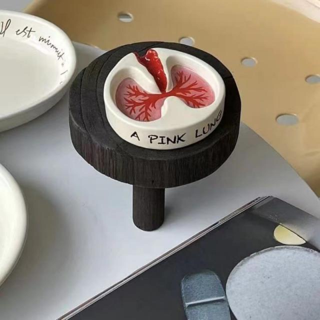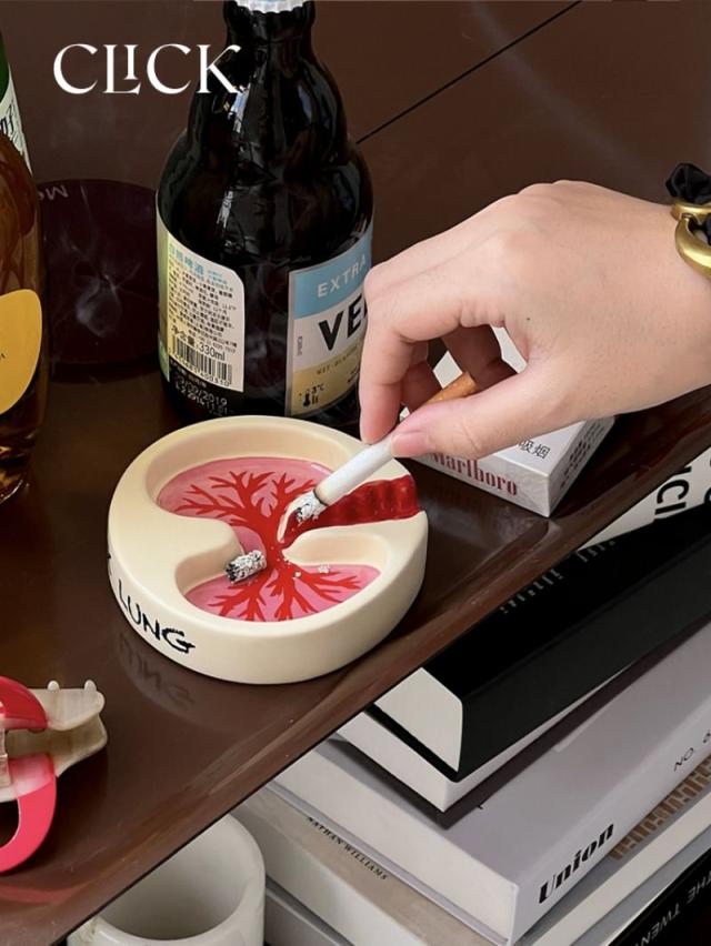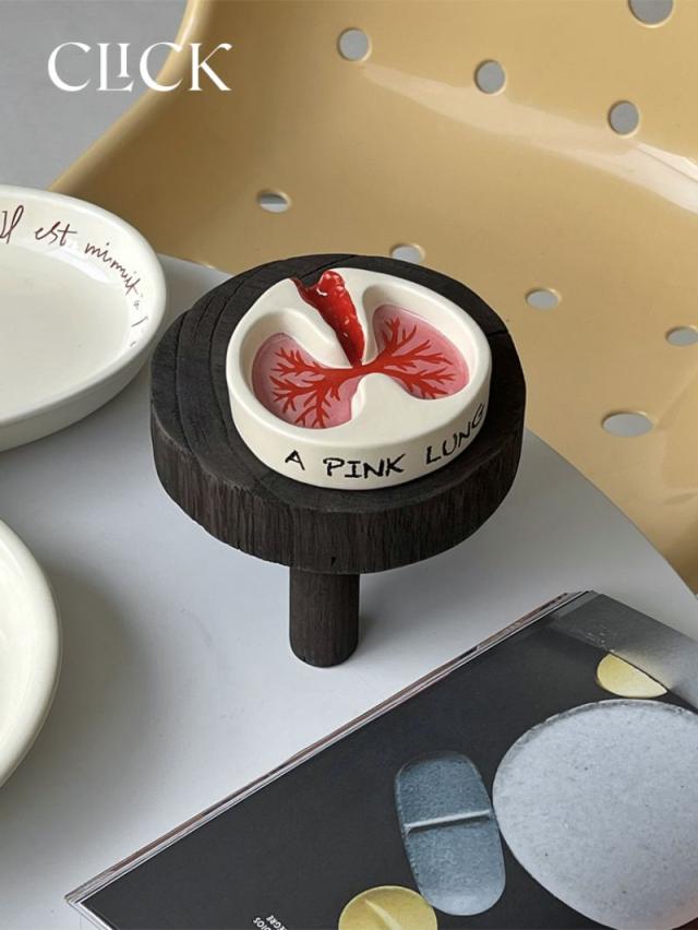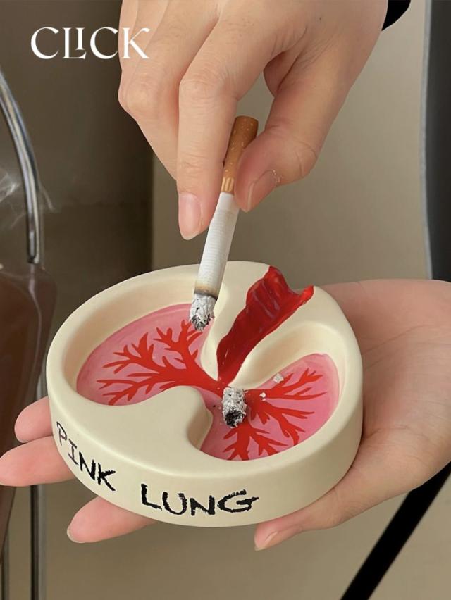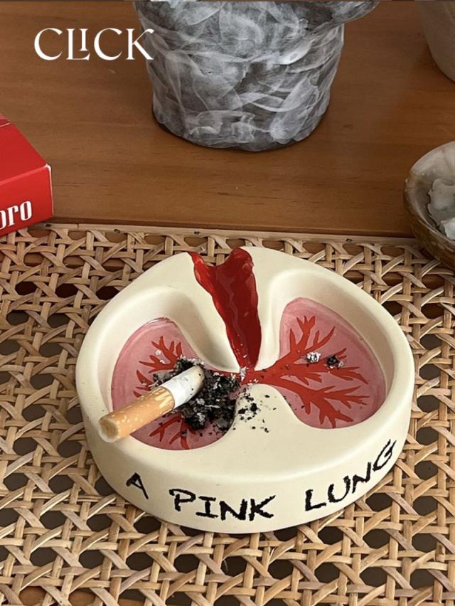 『煙草を吸うと肺が汚れます』をイメージしたおもしろ灰皿。