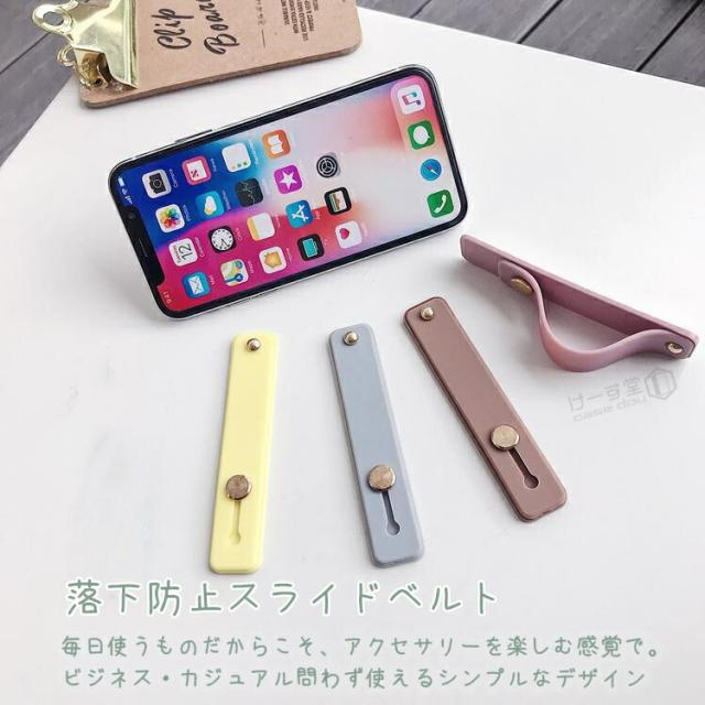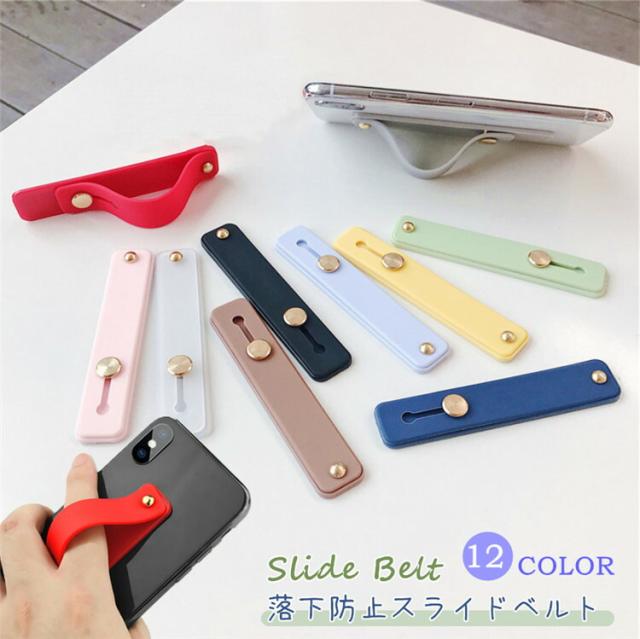 スマホ 落下防止 スライドベルト スマホリング かわいい おしゃれ ケースに 貼り付ける スマホ グリップ ベルト バンド ホルダー マルチ対応 スリム huawei iPhone Xperia Galaxy 貼り付け バンド ベルト タンド機能 落下防止 全機種 スライド式 スマホスタンド スマホベルト