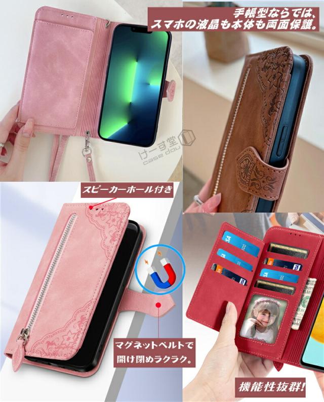 アローズ arrows We2 Plus F-51E ケース 手帳型 ショルダー 富士通 Fujitsu arrows we F52B FCG01 携帯ケース ショルダータイプ arrows F-41A F52A 手帳型 スマホケース カバー ファスナー ポケット ショルダーストラップ 花柄 液晶保護 財布型 耐衝撃 女子 おしゃれ かわいい