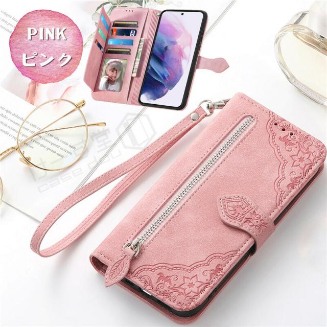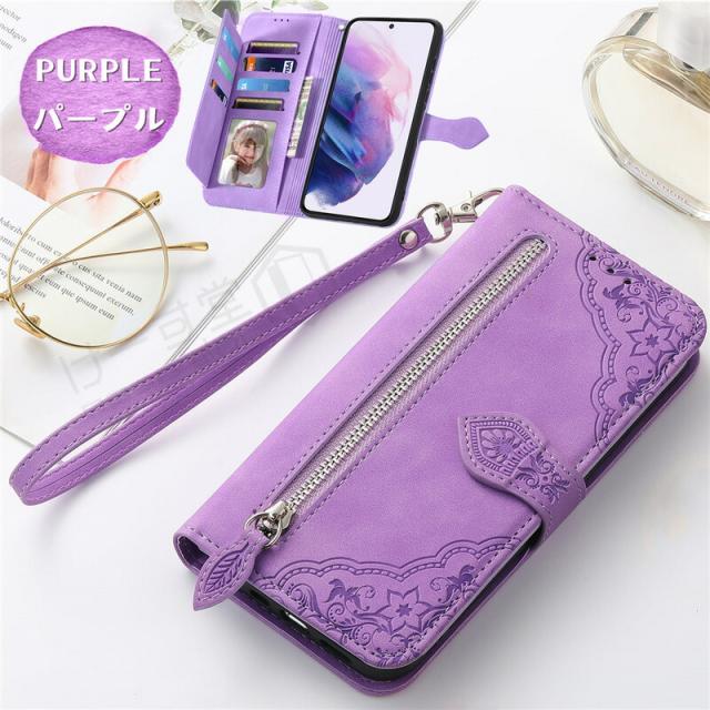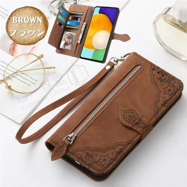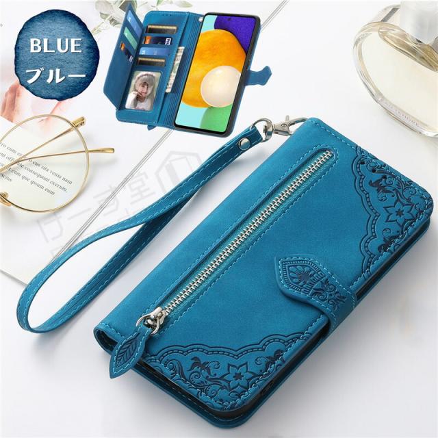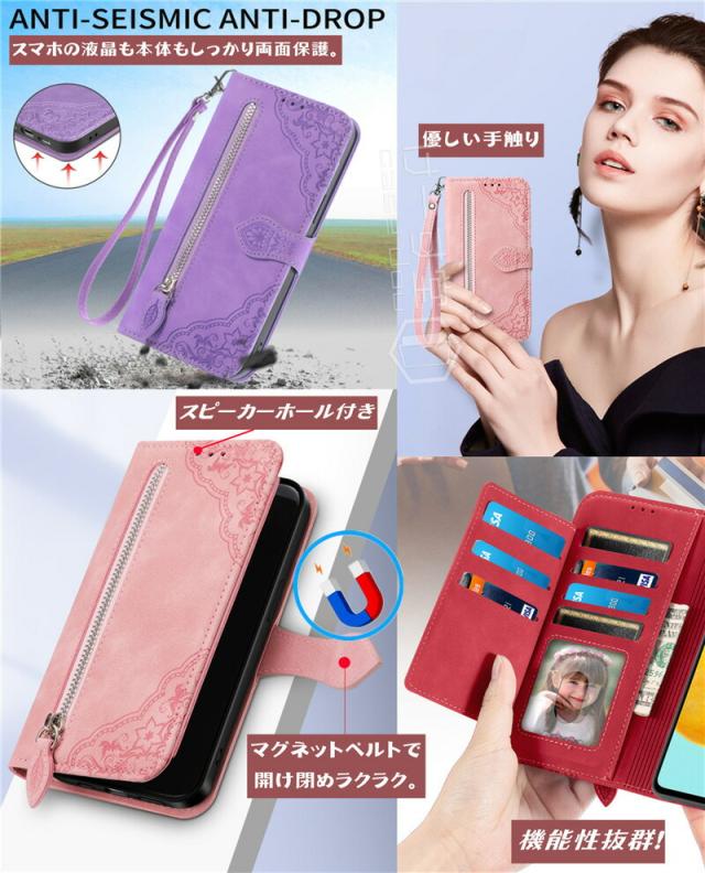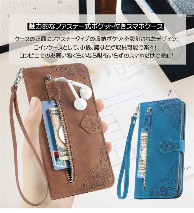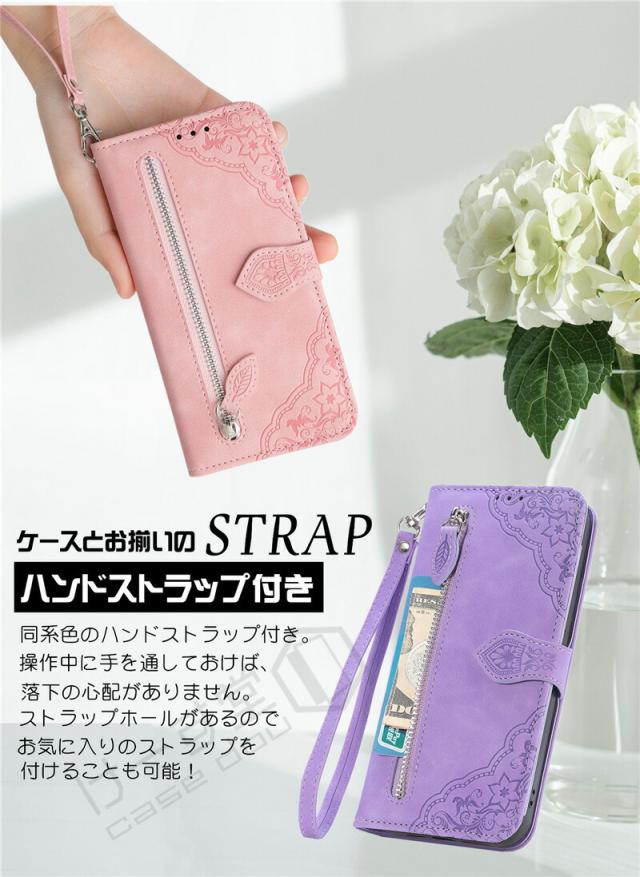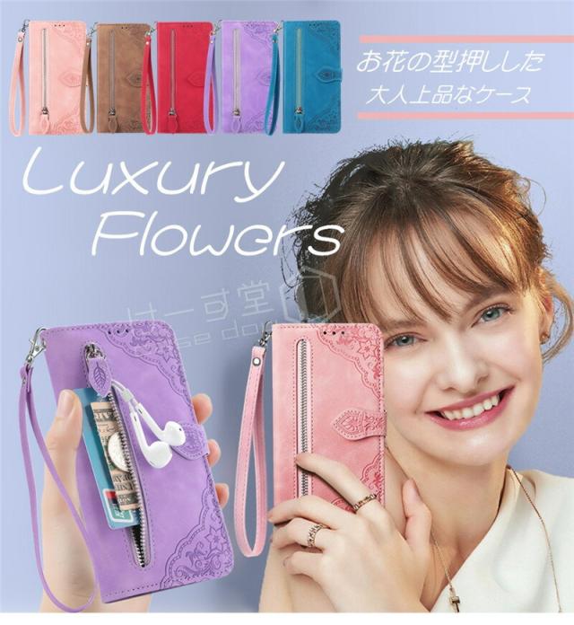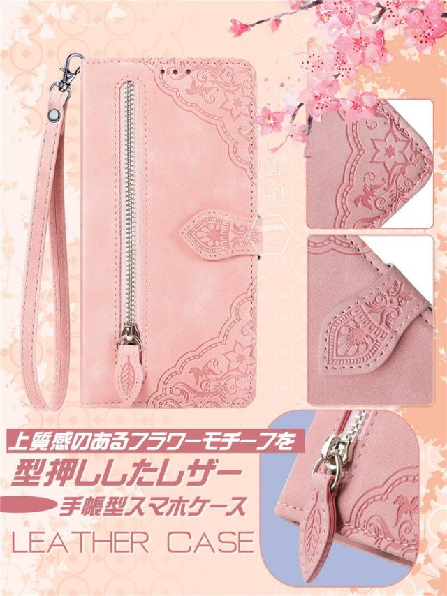 富士通 Fujitsu arrows We2 Plus F-51E ケース 手帳型 アローズ N F-51C F-41B F-41A F52A 携帯ケース らくらくフォン F-52B F-42A 手帳型 スマホケース カバー ジッパー ファスナー ポケット ハンドストラップ付き 花柄 カード入れ 財布型 耐衝撃 おしゃれ かわいい 型押し